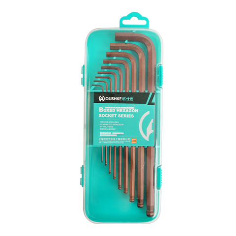बाहर 9 पीसी कॉपर ब्लैक हेक्सागोनल कुंजी रिट उच्च कार्बन स्टील आंतरिक हेक्सागोनल रंच सेट